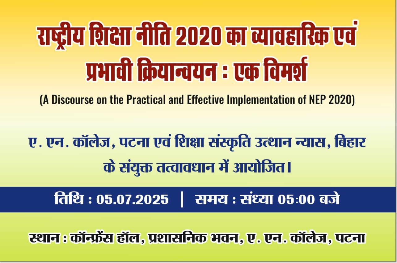 National Education Policy 2020: A Discourse on the Practical and Effective Implementation of NEP 2020. Organized under the joint aegis of A. N. College, Patna and Shiksha Sanskriti Utthan Nyas, Bihar.